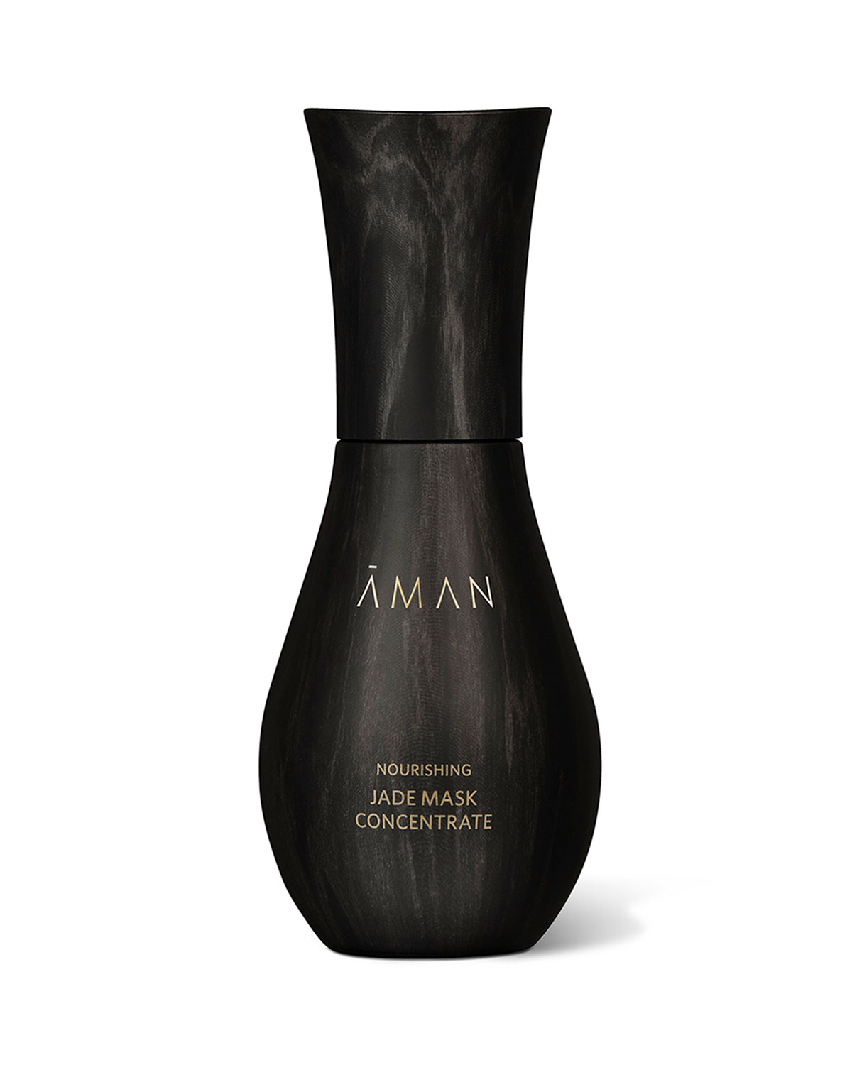 Aman 1.7 oz. Nourishing Jade Mask Concentrate DetailsHarnessing some of nature’s most potent rejuvenating ingredients, this creamy gel mask promises long-lasting hydration. Protein-rich, live royal jelly provides exceptional skin benefits, helping to stimulate collagen production and reduce the appearance of fine lines. Homeopathic gold supports cell regeneration, restoring skin tone, and hyaluronic acid plumps the skin. Ritual: Apply a teaspoonful to cleansed face and neck, avoiding eyes and.