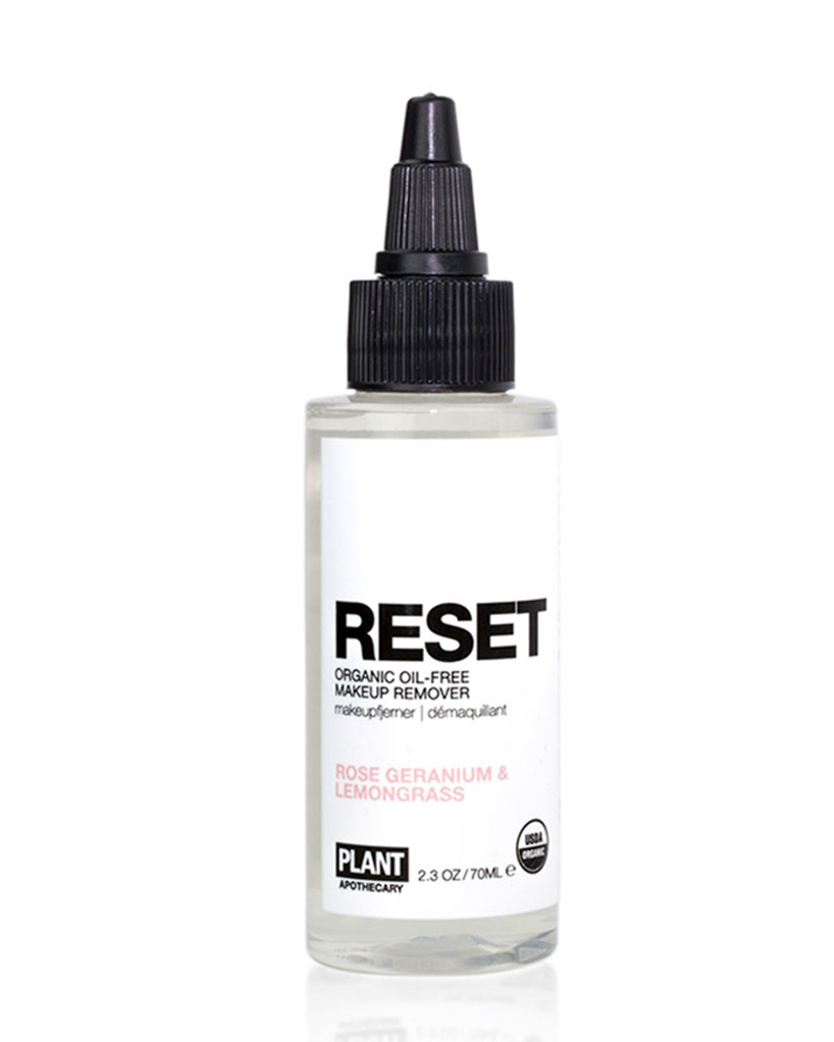 Plant Apothecary 2.3 oz. Reset Organic Makeup Remover DetailsRESET Organic Makeup Remover gently and effectively removes even the most stubborn makeup, without any oily residue or toxic chemicals. Lightly scented with organic lemongrass and rose geranium hydrosols, this all-natural remover will find a permanent home in your makeup bag or bathroom cabinet-and it’s small enough to carry on board a flight, too! Instructions: To remove eye makeup, simply squeeze a small amount of RESET onto.