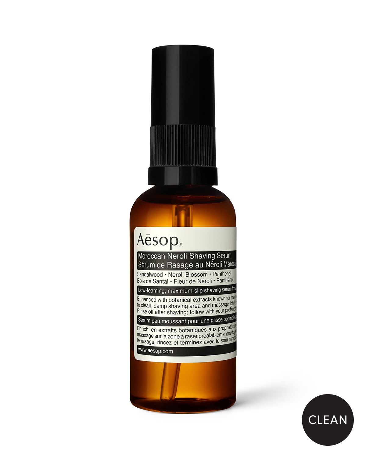 Aesop 2 oz. Moroccan Neroli Shaving Serum DetailsA blend of hydrating botanicals that calms and softens the skin, and provides maximum slip to facilitate a razor-close shave. How to Use: Dispense onto damp palms or into a shaving bowl. Lather with hands or Aesop Shaving Brush. Apply to desired area, ensuring even coverage. Follow with preferred Aesop hydrator. Apply additional product or rework with more water if serum dissipates. Never shave dry skin. Suited for: Most skin types, including s.