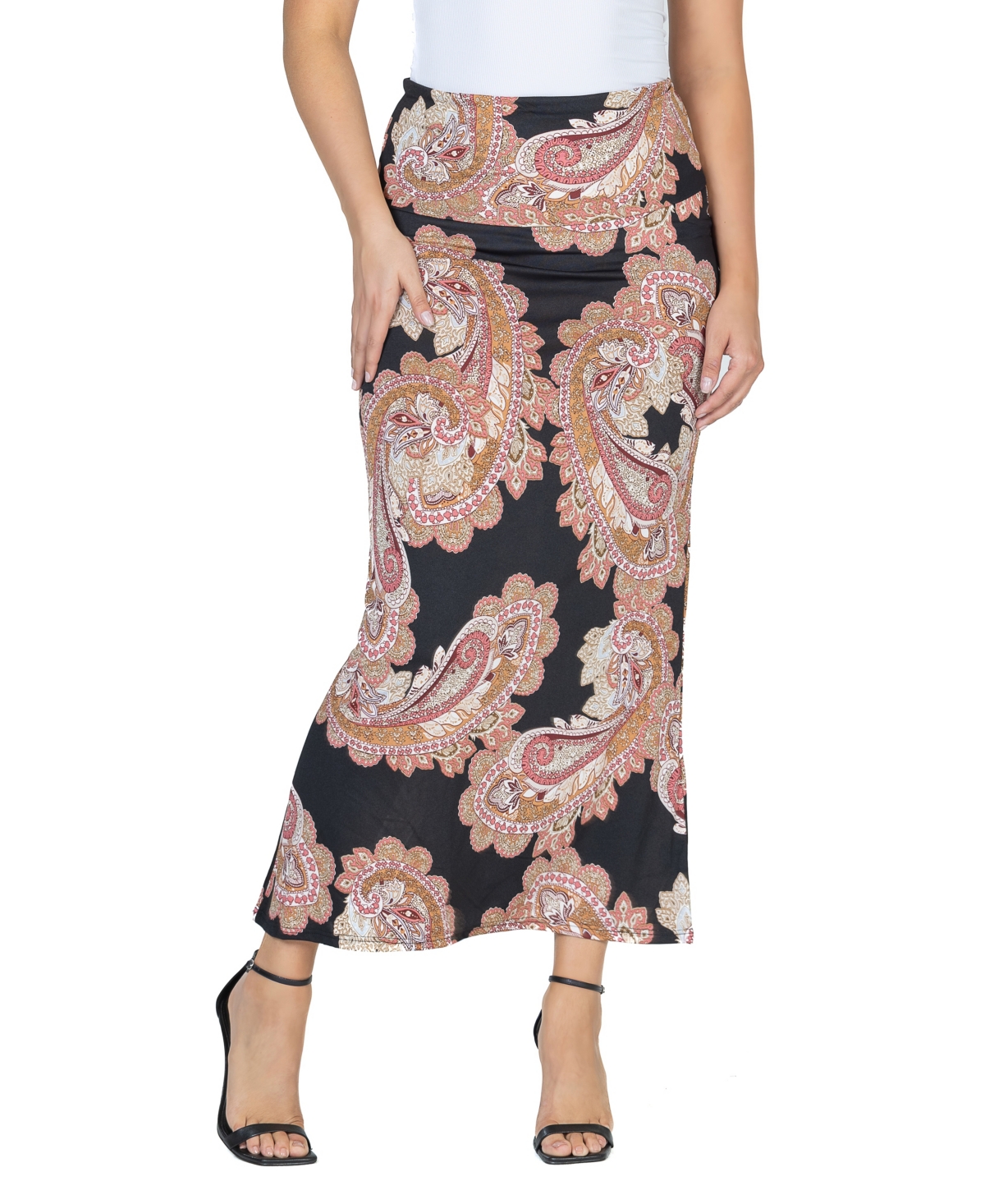 24seven Comfort Apparel Women’s Black Paisley Print Fold over Maxi Skirt – Black Multi