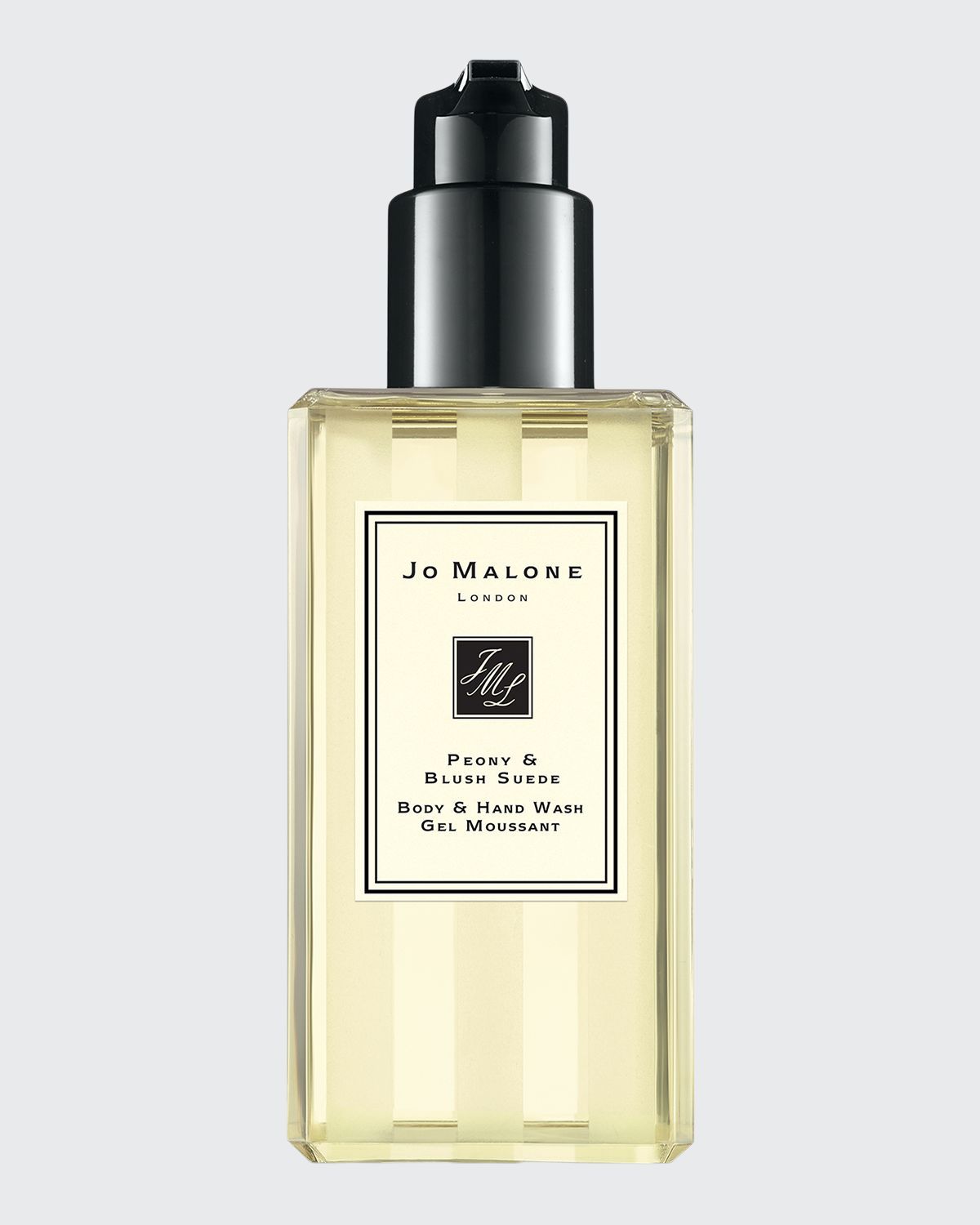 Jo Malone London 8.5 oz. Peony & Blush Suede Body & Hand Wash Gel Peonies in voluptuous bloom, exquisitely fragile. Flirtatious with the juicy bite of red apple and the opulence of jasmine, rose and gily flower. Mingling with the sensuality of soft, blush suede. Luxurious and seductive. Jo Malone London Peony & Blush Suede Body & Hand Wash Gel, 250mL/8.45 fl. oz.