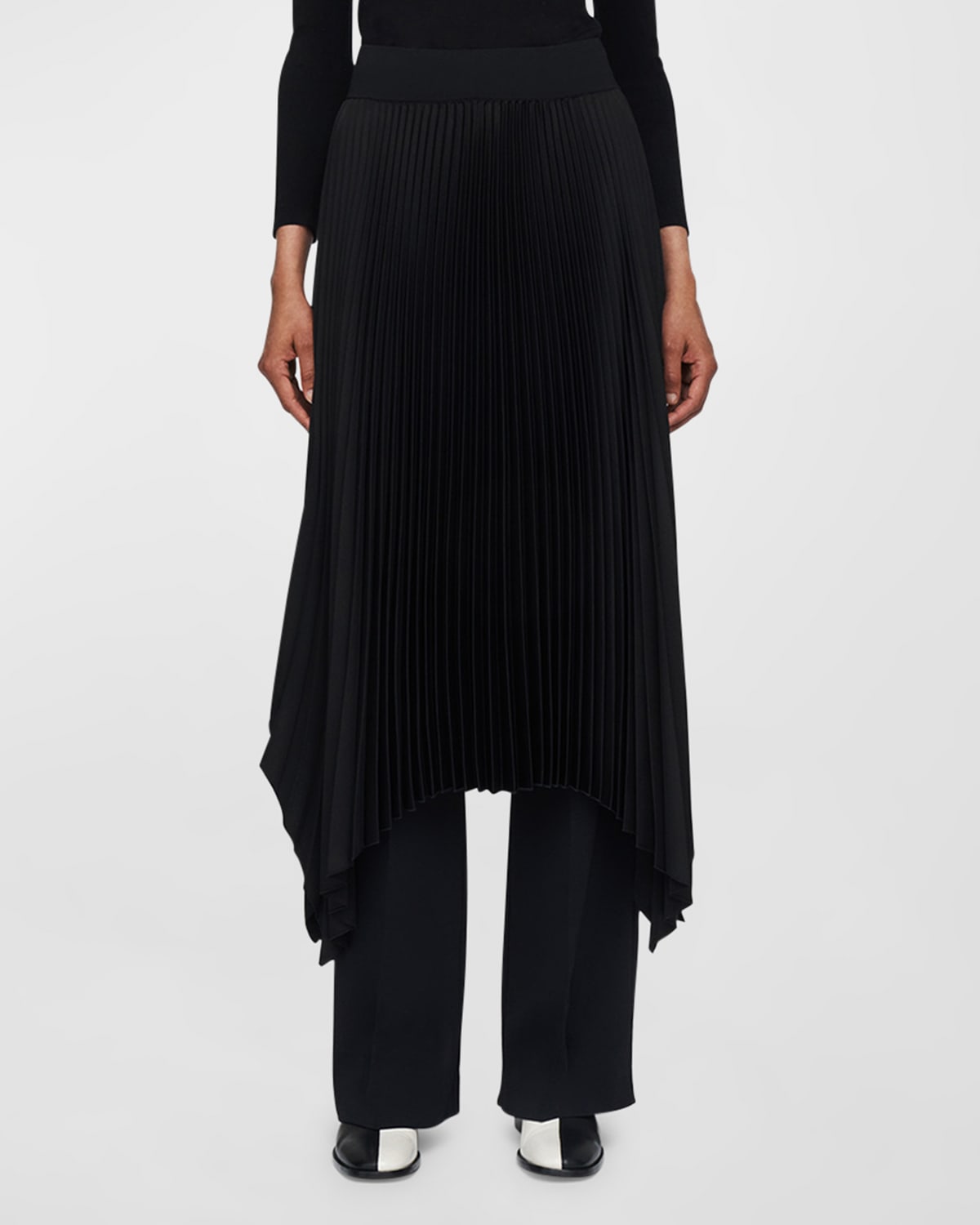 Joseph “Ade” pleated midi skirt Sits high on the hips Elasticized waistband Handkerchief hem Hem falls below the knee A-line silhouette Pull-on style Polyester Dry clean Imported