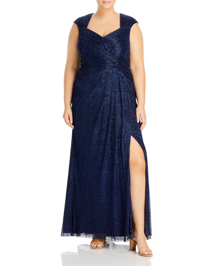 Adrianna Papell Plus Metallic Pleated Gown