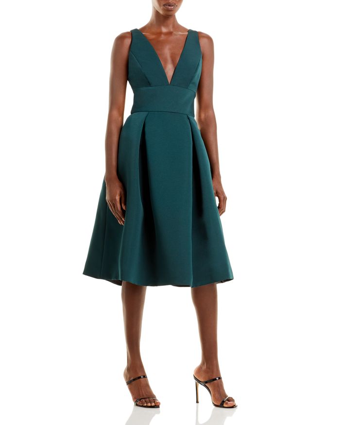 Amsale Faille V-Neck Fit-and-Flare Dress