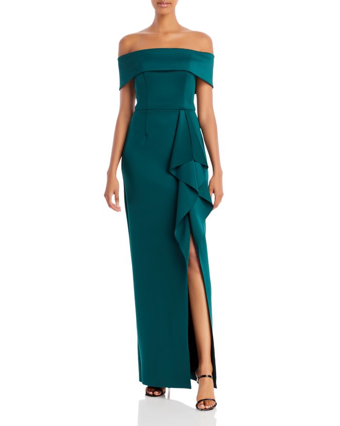 Aqua Off-the-Shoulder Cascade Gown – 100% Exclusive
