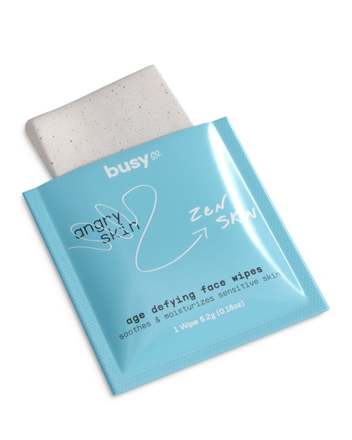 What It Is: Face wipes to soothe and repair sensitive skin with Retinol, Squalane and Coffee. What It Does: This wipe is like a spa day at the Fountain of Youth and is perfect for sensitive skin. Every wipe is individually wrapped, made of cotton and is 100% biodegradable! Busy Beauty’s manufacturing is powered by wind energy. Made in Usa! Unscented. Key Ingredients: Retinol works to repair, tone and smooth skin while squalane oil and coffeeberry soothe and protect skin by locking in moisture, b