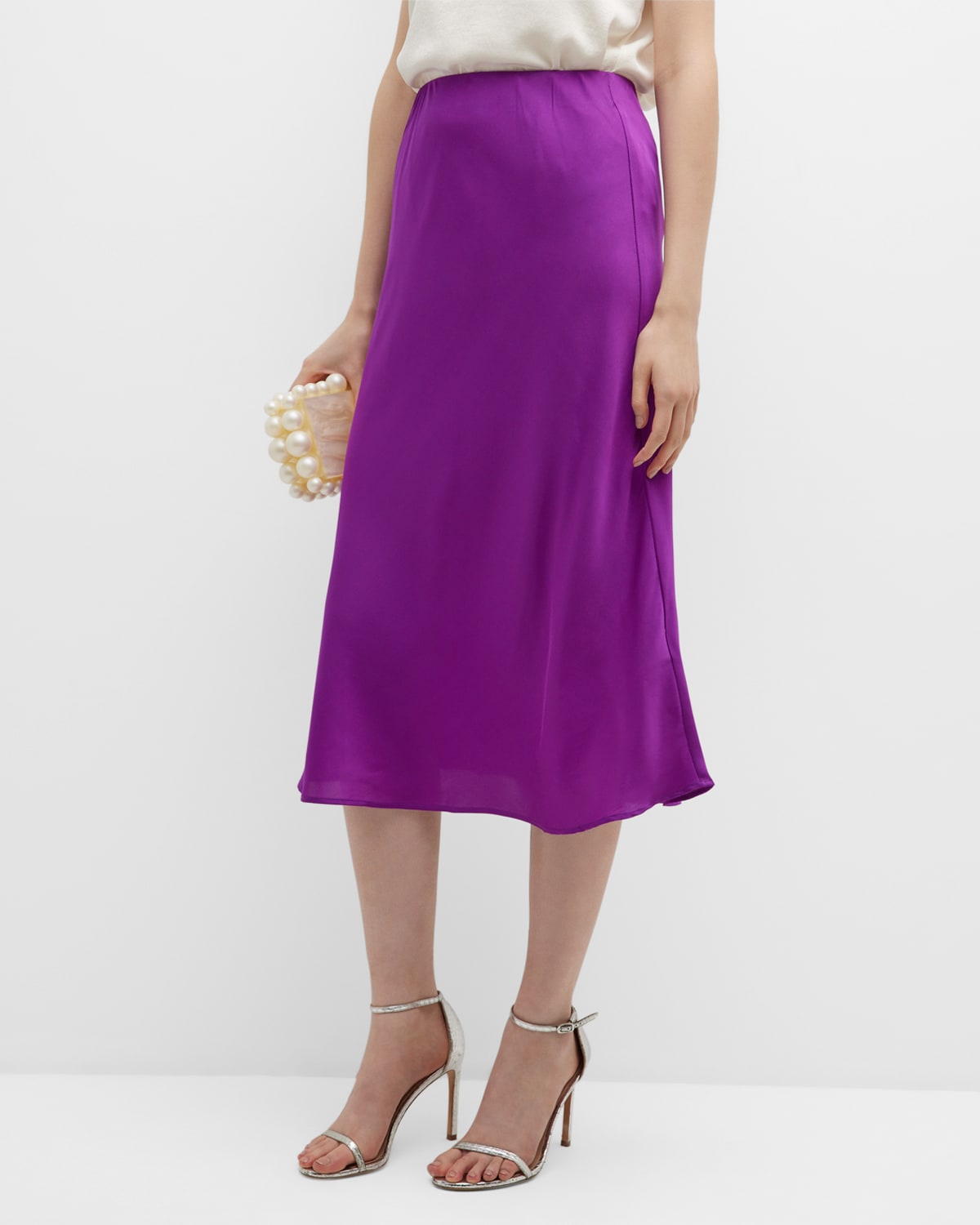 NOUVELLE SILK95FIVE “Chamonix” midi skirt featuring an elastic waistband in a flowing silk Mid-rise Pencil style Hem falls below the knee Pull-on style Silk/elastane Hand wash Imported