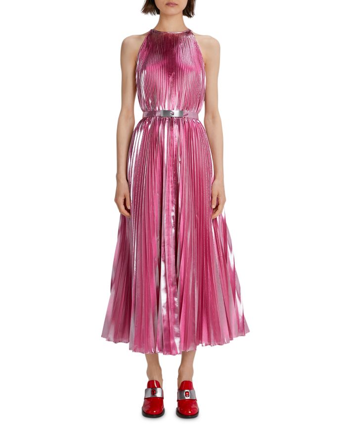 Christopher Kane Crystal Buckle Pleated Midi Dress