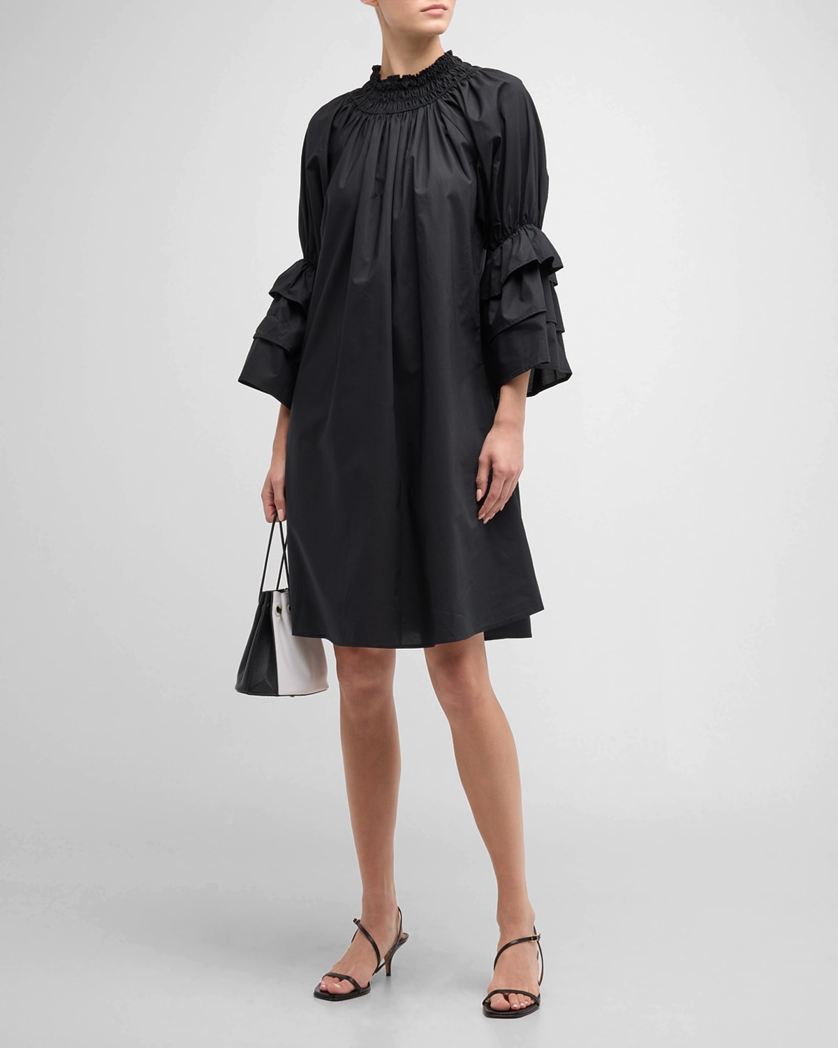 Daphne Ruched Tiered-Sleeve Mini Shift Dress