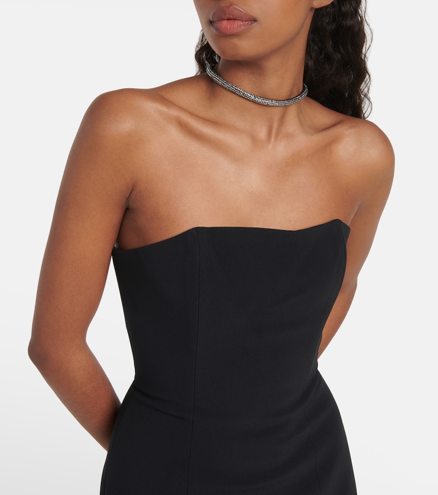 David Koma creates contemporary eveningwear that will captivate the crowd. This bandeau minidress has a sculpting, close-fitting silhouette with structured seaming and embellished metallic mesh ripples that drape below the straight hem.