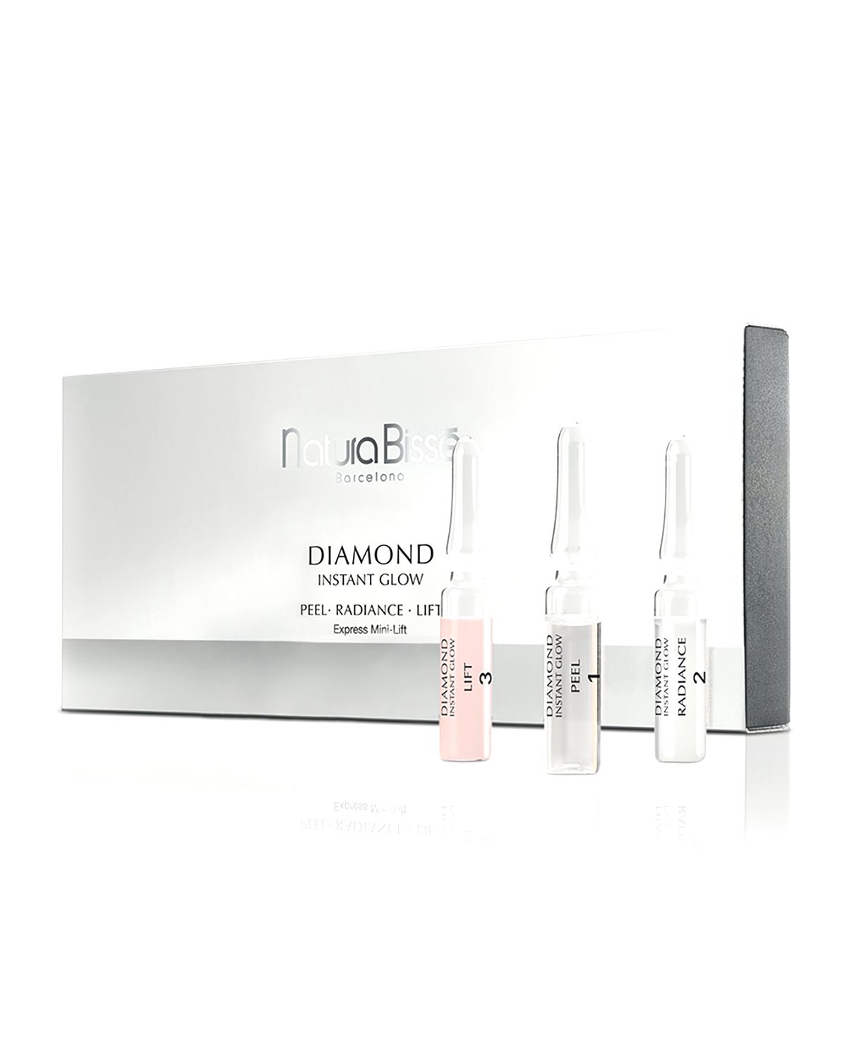 Natura Bissé Diamond Instant Glow DetailsAn Express Mini-Lift that will leave your skin radiant in only 10 minutes. How It Works: A 3-step treatment (exfoliates, brightens and lifts) that transforms skin in record time, leaving it incredibly smooth, firm and luminous. Achieve professional results at home, notice how the signs of fatigue and fine lines disappear and how, thanks to its tightening effect, wrinkles are softened and your skin recovers all its beauty making it the perfect ba.
