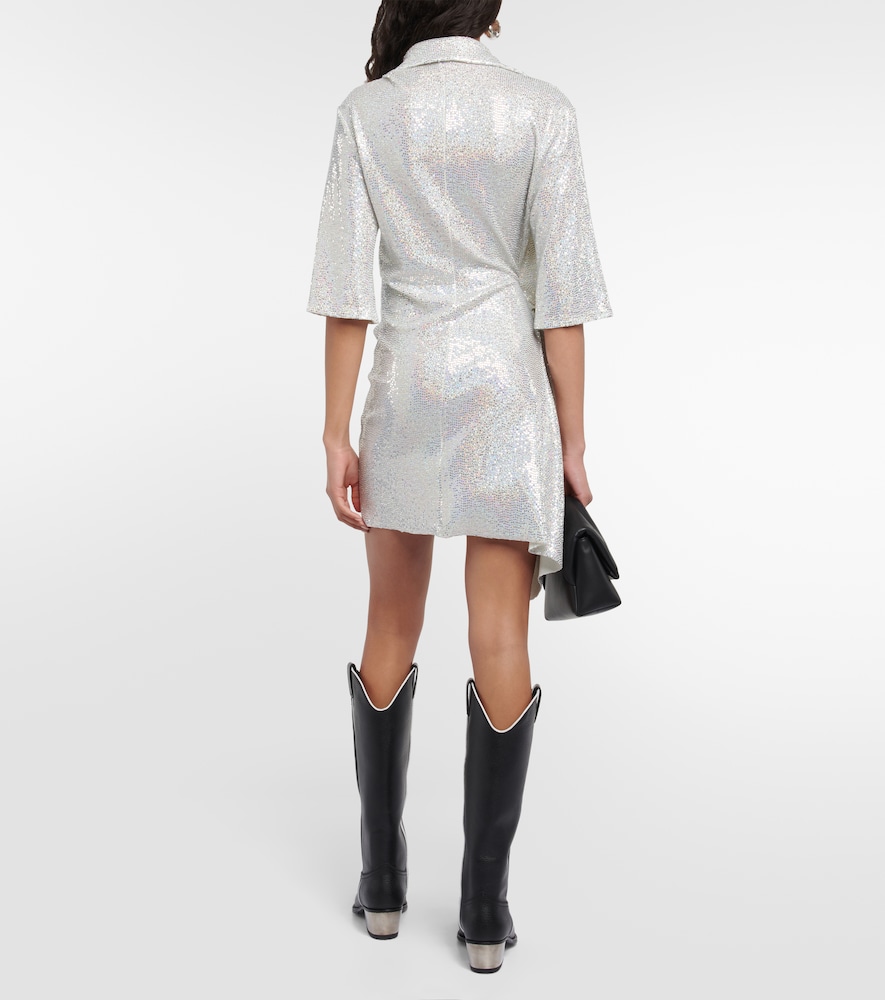 Dodo Bar Or’s elevated eveningwear approach is spotlighted by this sequined minidress. Tailored with a point collar and short sleeves, this draped style has a twisted front bodice that lands at an asymmetric hem.