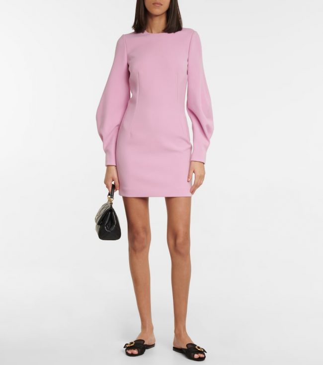 This minidress from Dolce & Gabbana is ideal for daytime summer events. It has a structured fit defined by slightly voluminous sleeves, a flattering cinched waist, and dart detailing.