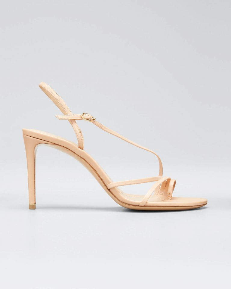 Nicholas Kirkwood “Elements” sandal in smooth lamb leather. 3.3″ stiletto heel. Strappy upper with toe loop. Asymmetric slingback with adjustable buckle. Leather outsole. Made in Italy.