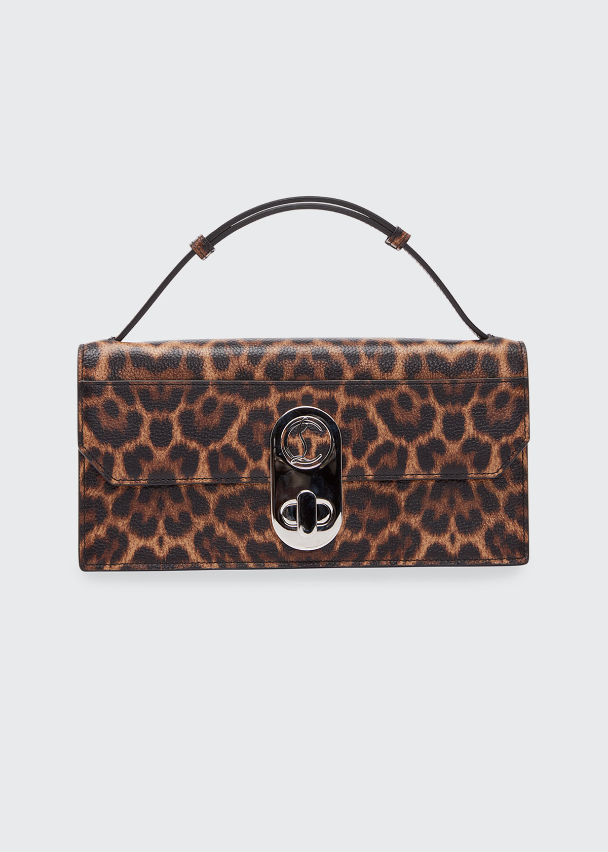 Christian Louboutin “Elisa” leopard-print leather shoulder bag. Top handle. Flap top with logo cutout center; twist-lock closure. Interior pockets. Made in Italy.