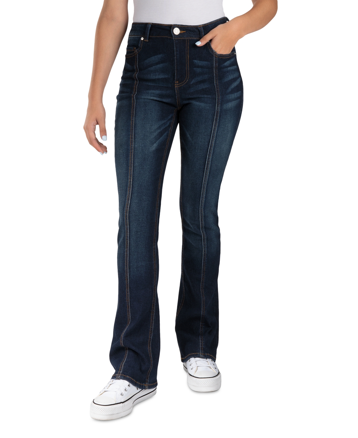 Indigo Rein Juniors’ Seamed High-Rise Bootcut Jeans – Dark Blue