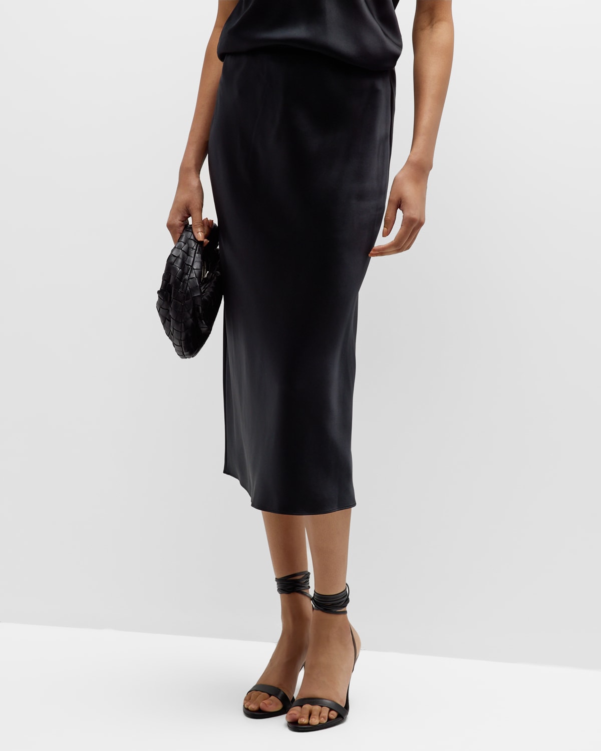 Isaak Straight Silk Satin Midi Skirt
