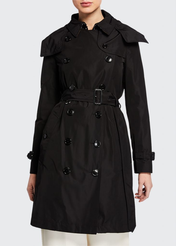 Kensington Double-Breasted Trench Coat w/ Detachable Hood