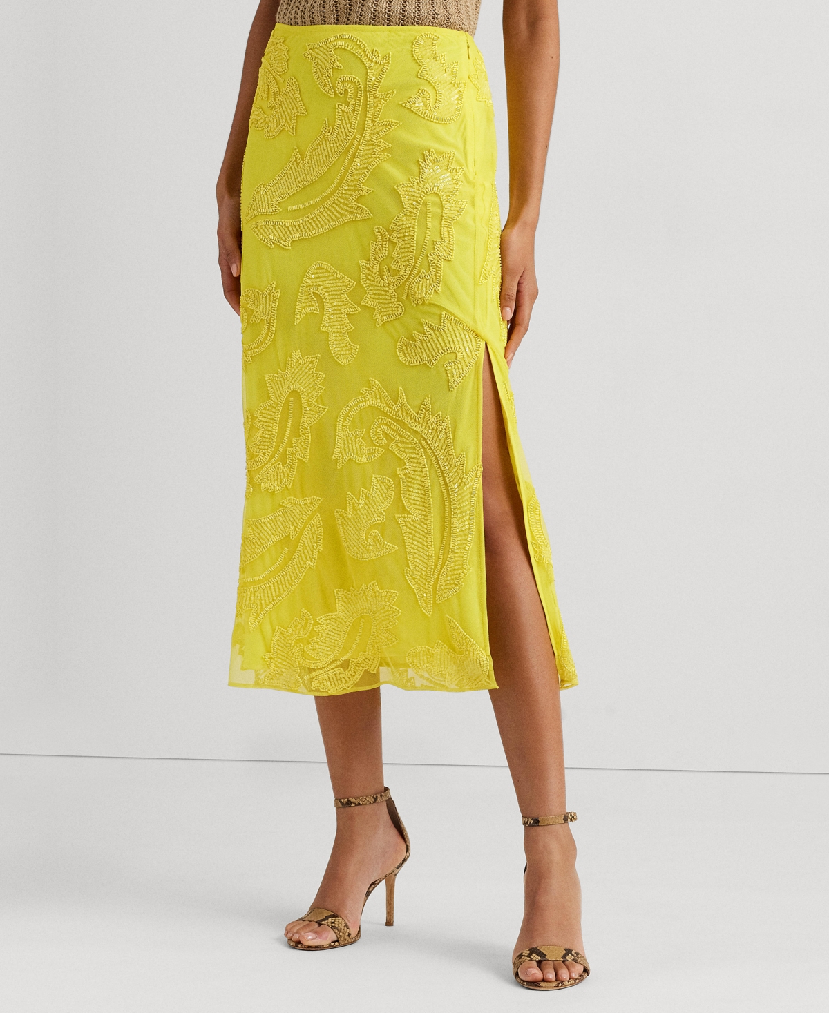 Lauren Ralph Lauren Women’s Beaded Mesh Midi Skirt – Lemon Daffodil