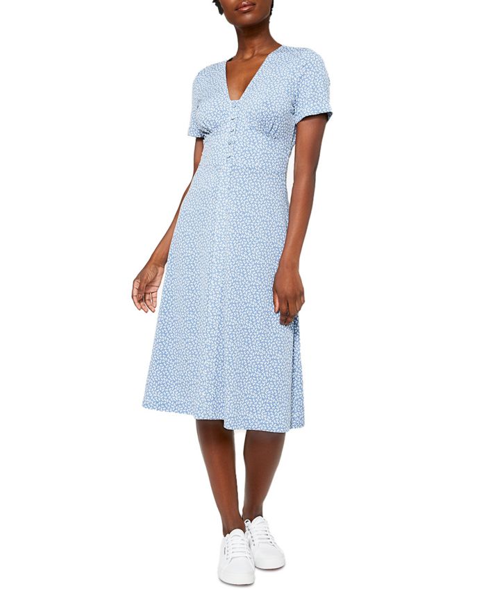 Size & Fit Fits true to size, order your normal size Fitted at the chest and waist, relaxed at the hip Stretchy fabric Designed to hit below the knee Approx. 44 from high point shoulder to hem, based on a size medium Model measurements: 5’10 height, 33.5 bust, 23.5 waist, 34.5 hips, wearing a size small Features