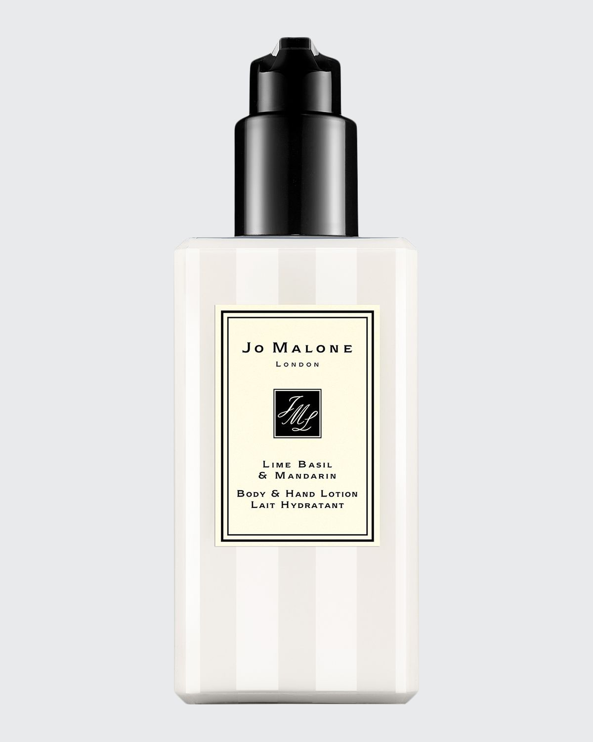 Jo Malone London Lime Basil & Mandarin Body & Hand Lotion, 250ml Reminiscent of the scent of limes carried on a Caribbean sea breeze, Jo Malone London Lime Basil & Mandarin has become a modern classic for men and women. Fresh limes and zesty mandarins are undercut by peppery basil and aromatic white thyme in this alluring signature blend. Lime Basil & Mandarin Body & Hand Lotion keeps skin silky smooth and is a deliciously fragrant way to feel pampered every day. 8.5 fl. oz./250 ml.