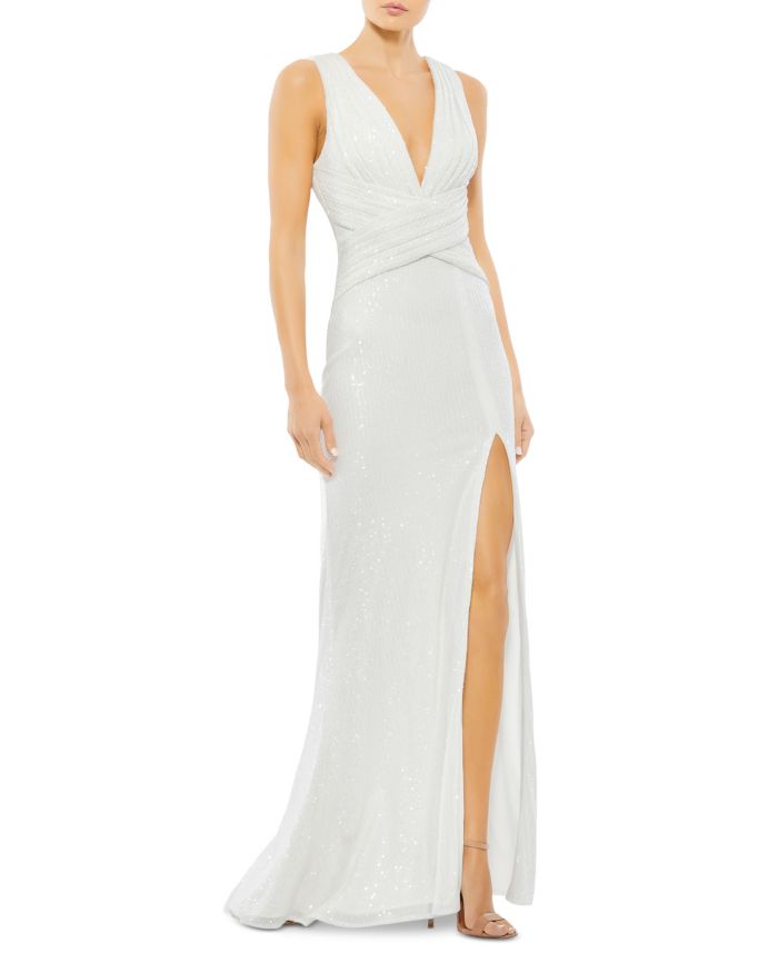 Mac Duggal Embellished Sleeveless Cross Front Gown