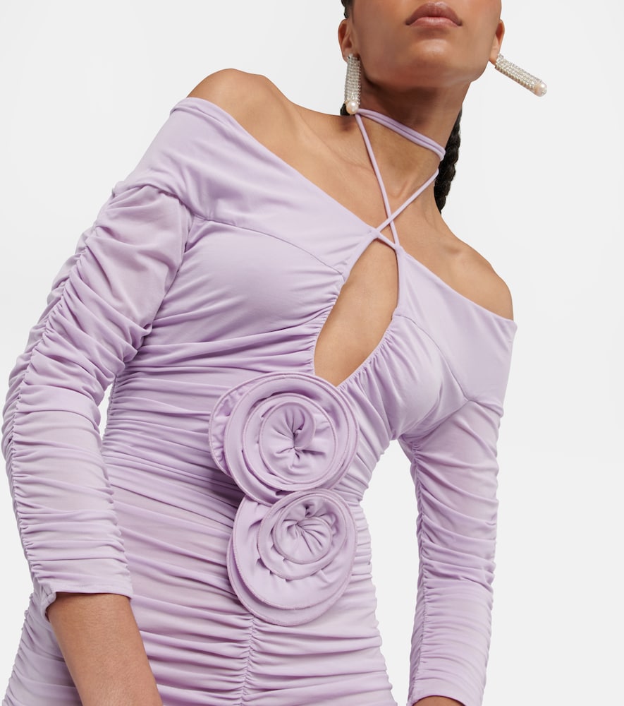 Magda Butrym’s penchant for playful proportion is spotlighted by this minidress. Boasting an all-over ruched texture that creates depth to the form-fitting body, this style has signature rosettes on the cutout bodice and halterneck ties.