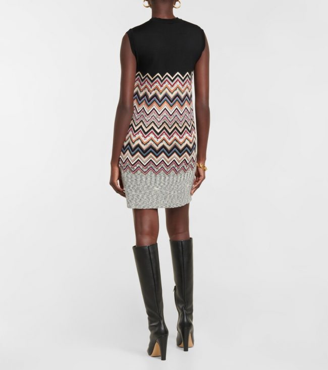 Featuring the label’s signature zigzag patterning, this minidress from Missoni is made from a wool-blend knit and has a crewneck.