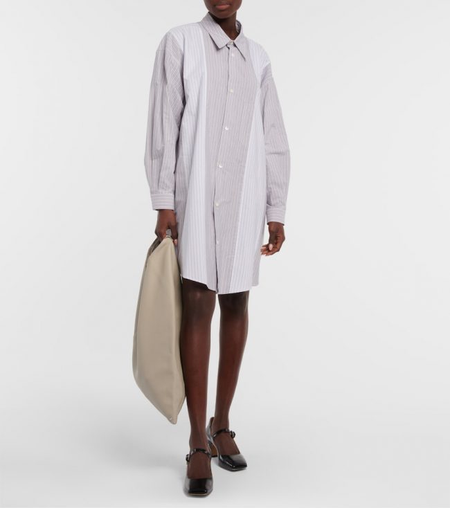 This shirt dress from MM6 Maison Margiela is designed for an oversized silhouette. It’s made from striped cotton and features a pointed collar, dropped shoulders, and buttoned cuffs.