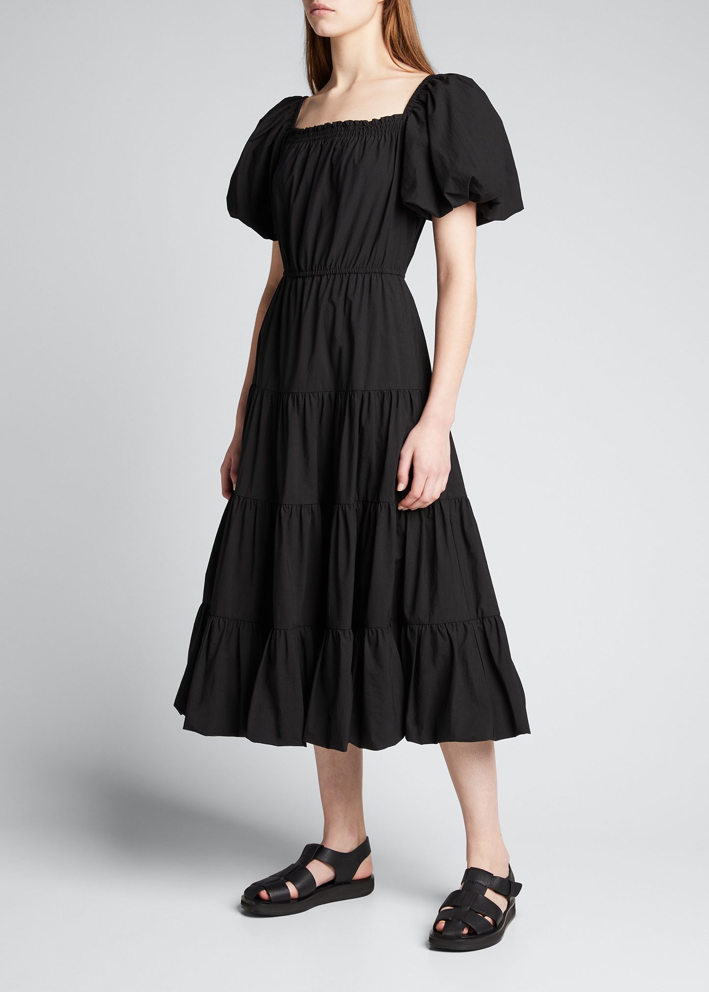 Off-Shoulder Puff-Sleeve Tiered Dress