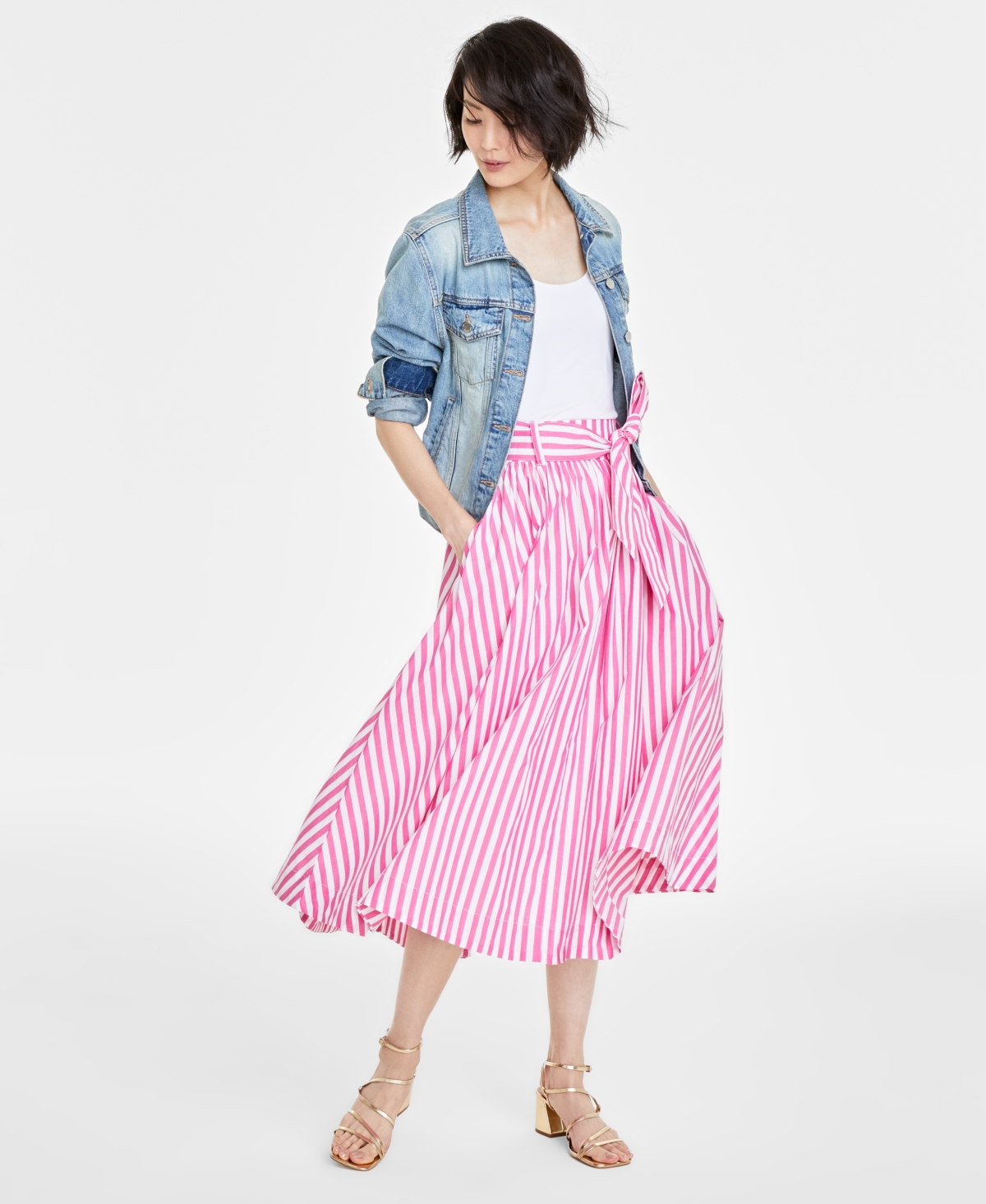 On 34th Women’s Striped Belted Midi Skirt, Created for Macy’s – Fuchsia Combo
