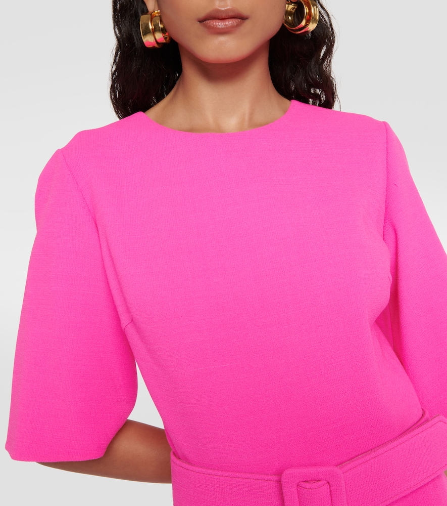 This vibrant dress from Oscar de la Renta is made from a wool-blend. The design comes with an asymmetric hem, a tonal buckle belt, and elbow-length sleeves.