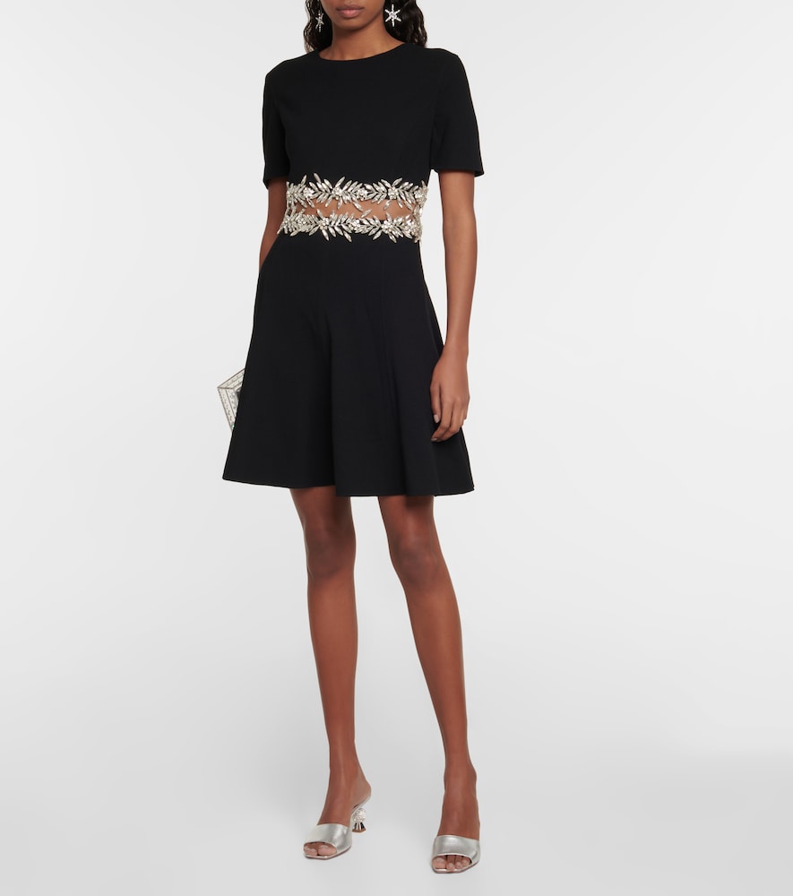 Oscar de la Renta Embellished cutout wool-blend cr????pe minidress