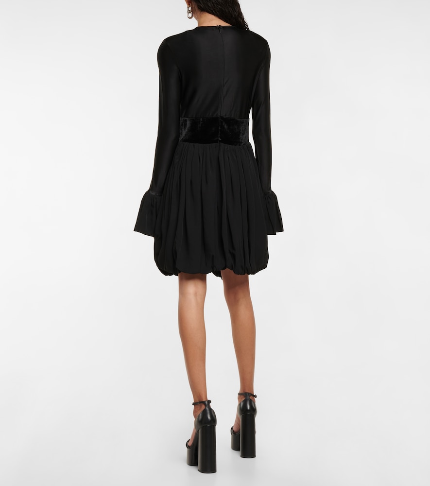 Paco Rabanne brings a sculptural edge to the classic LBD with this must-have design. Fitted with a cinching velvet panel at the waist, it??????s shaped with flared cuffs and a puffy, pleated skirt.
