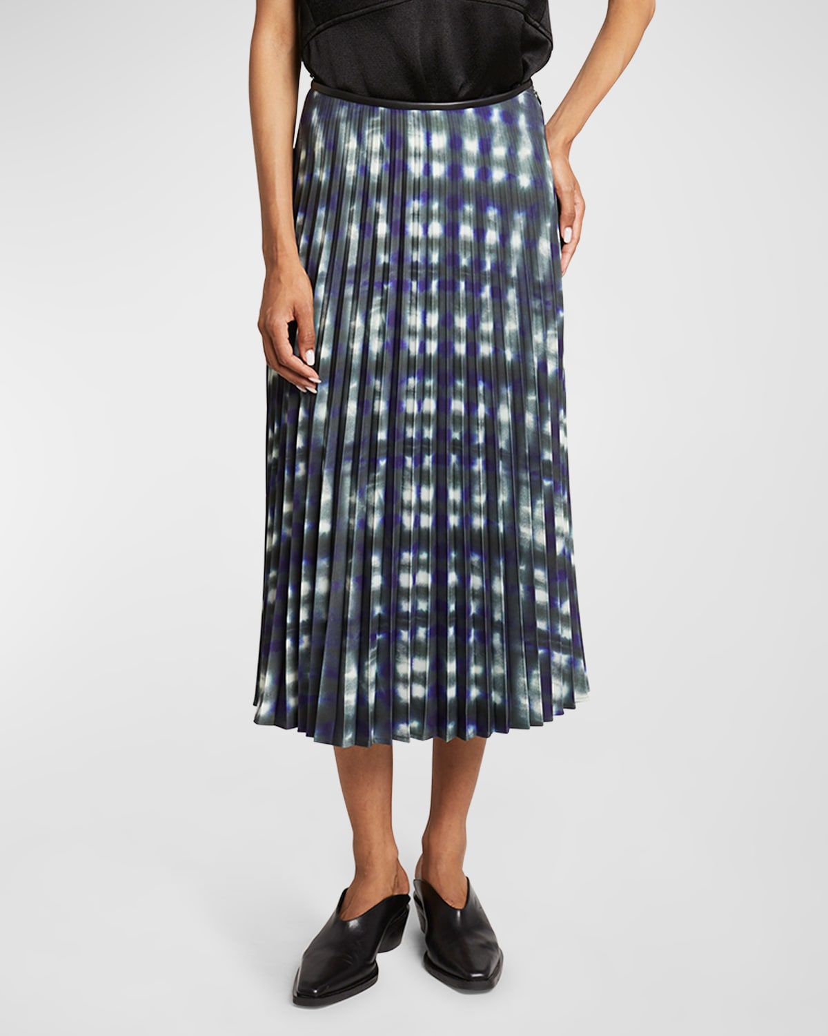 Proenza Schouler White Label “Piper” pleated midi skirt featuring an abstract-print High rise A-line silhouette Hem falls below the knee Invisible side zip Polyester/spandex Dry clean Imported