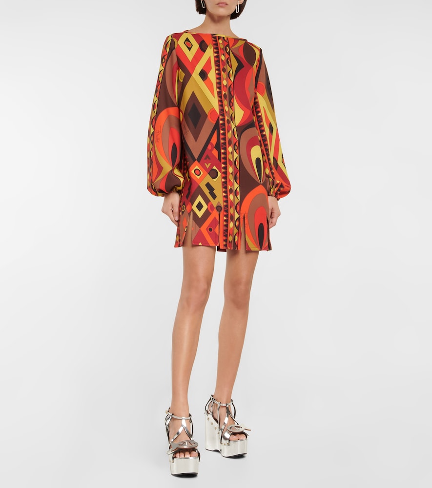 This psychedelic motif is an archival Pucci print that’s brought back for the new season. This minidress has balloon sleeves and a relaxed silhouette.