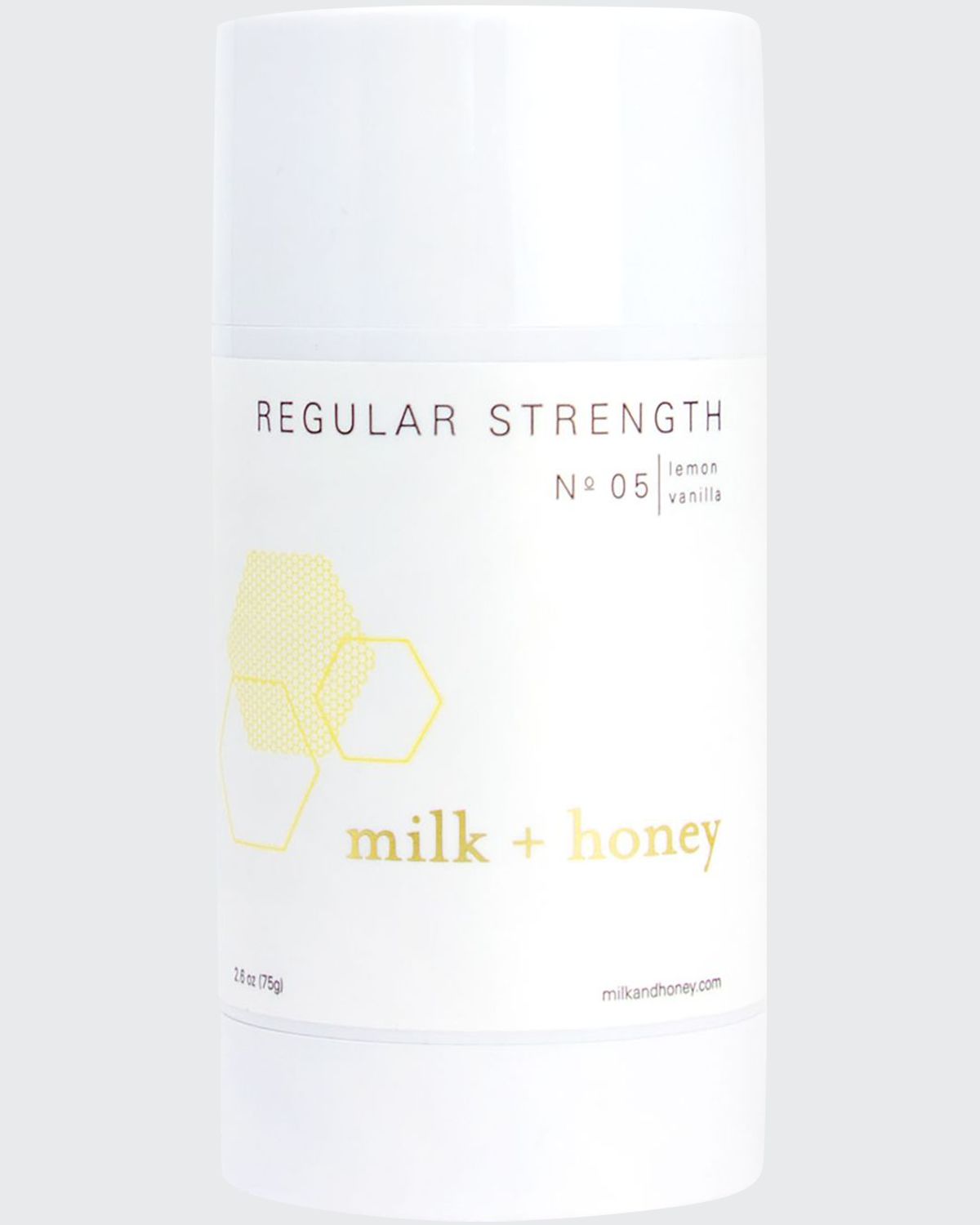milk + honey Regular Strength Deodorant No.05 (Lemon, Vanilla), 2.6 oz / 75g FRESH. This effective, aluminum-free deodorant keeps you feeling (and smelling) fresh all day. Directions: Warm deodorant by pressing against your underarm for a few seconds. Then, apply liberally to ensure full coverage. Reapply as necessary. This formulation is suitable for most skin types and features 40% less baking soda than our original formulation. It’s ideal for those who are transitioning to an aluminum-free.