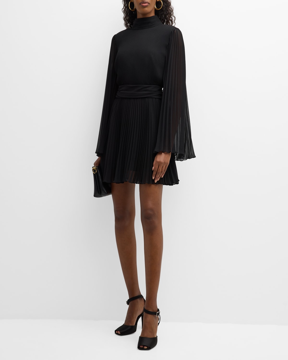 Rosemary Pleated Mock-Neck Chiffon Mini Dress
