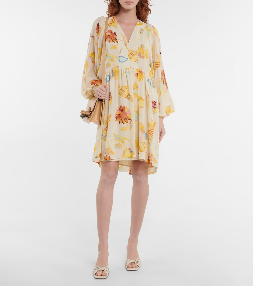This minidress from See By Chloe is made from airy georgette that’s printed with a panoply of fruits and florals. It has billowy balloon sleeves and a softly pleated skirt.