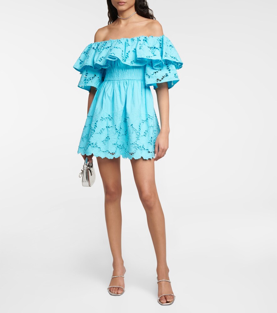 Self-Portrait Off-shoulder cotton-lace minidress