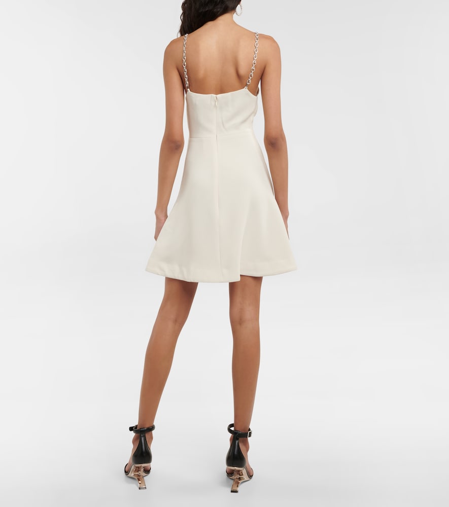 Jonathan Simkhai proves less is more with the Ellis minidress. Made from textured crepe, it??????s shaped with a plunging neckline, waist cutout detailing secured with silver-toned ring hardware, darts at the bust, and embellished lobster clasp-linked shoulder straps.