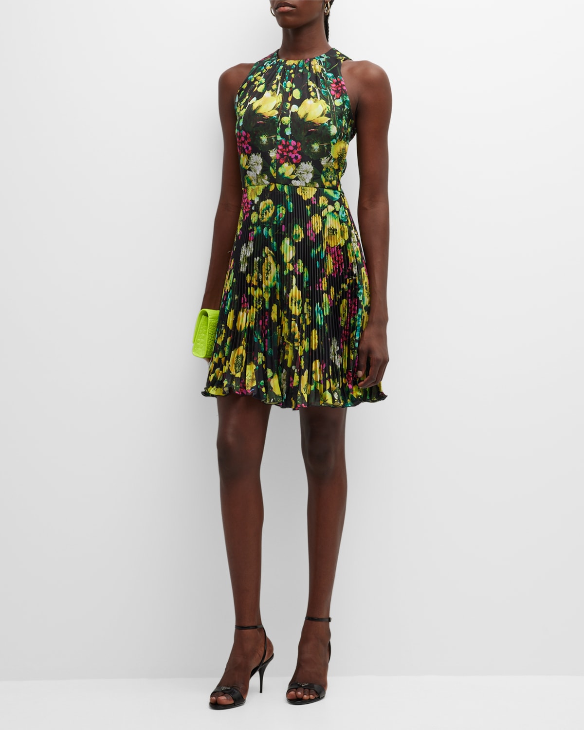 Sleeveless Pleated Floral-Print Mini Dress