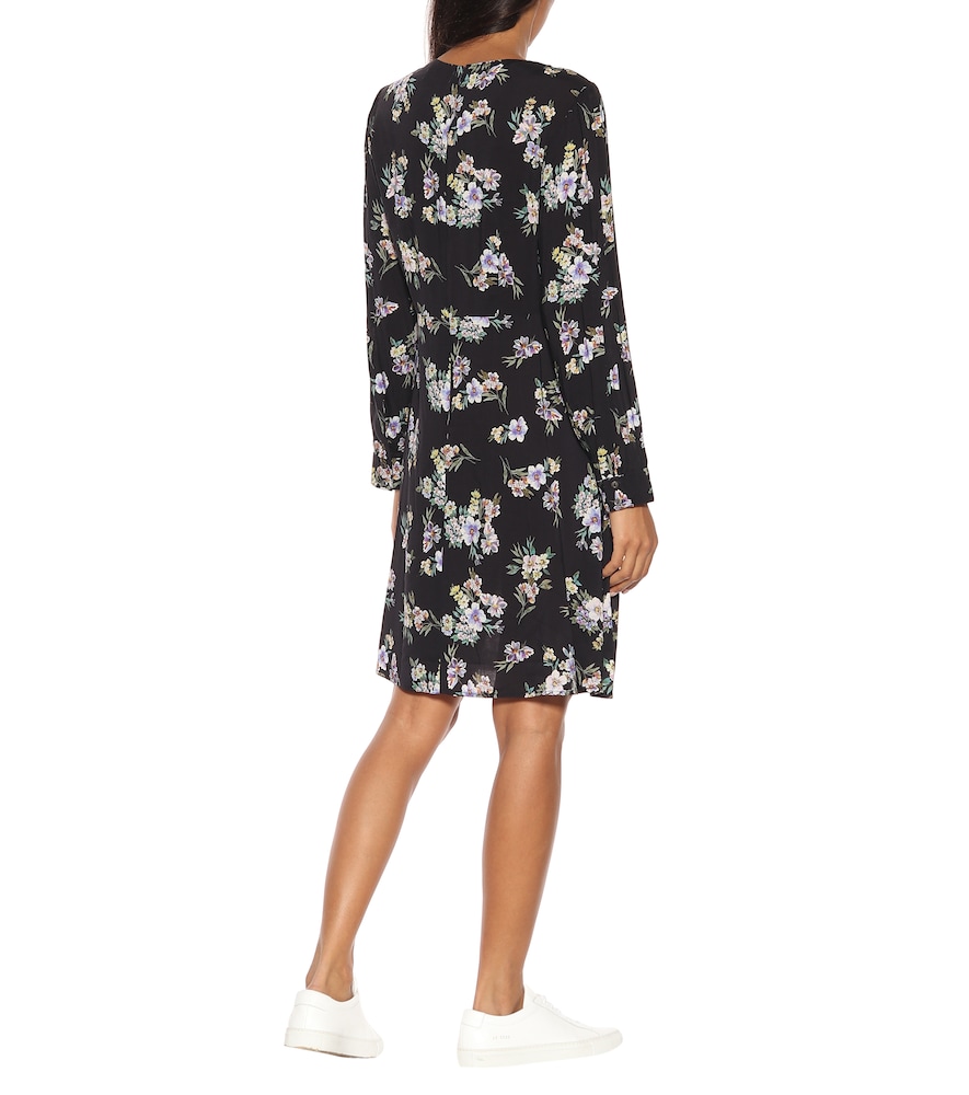 Take florals into fall with this navy “bellflower” printed dress from Velvet. Made in the USA from woven challis, this draped frock has a short silhouette, long sleeves with a slight puff thanks to do the cinched double-button cuffs, handy pockets at the hip, and a nipped in waist to add dimension to your figure. Wear yours with ankle boots and a leather jacket for a hard-meets-soft edge.