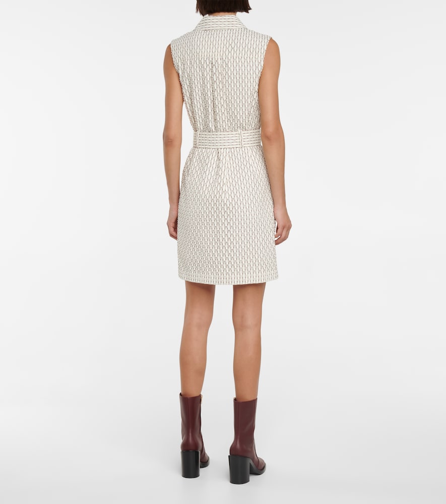 This white minidress from Victoria Victoria Beckham has frayed cutouts to create a checked motif. Made from cotton-blend twill, it has an A-line silhouette with buttoned crepe pockets and a coordinating belt that cinches the waist.