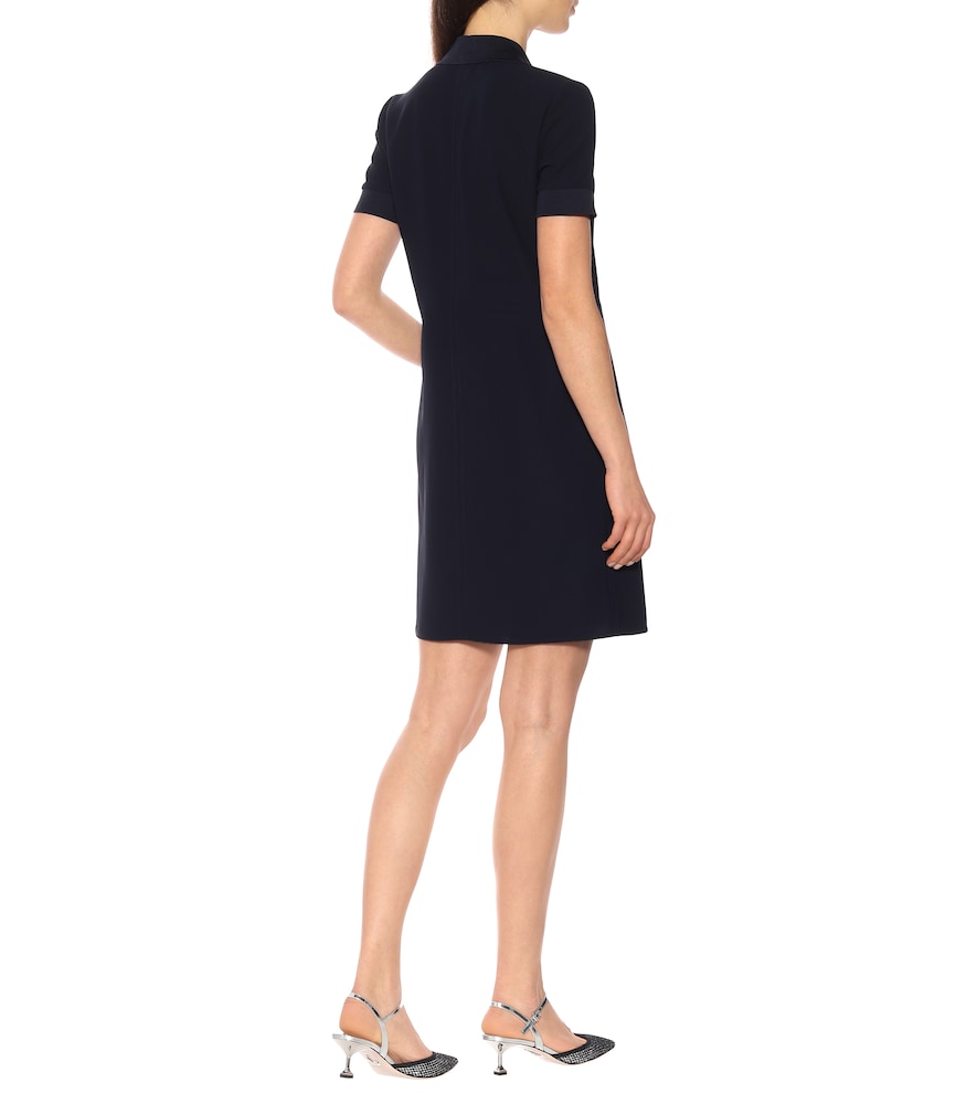 Victoria Victoria Beckham puts a sophisticated twist on the shirt dress with this polo-shirt inspired design. Crafted from a dark navy crepe, this short sleeve design features a contrasting electric blue zip detailing and an oversized patch pocket with the letters ‘VVB’ embroidered on it. Choose sleek sneakers to complete the sports-cool vibe of the piece.