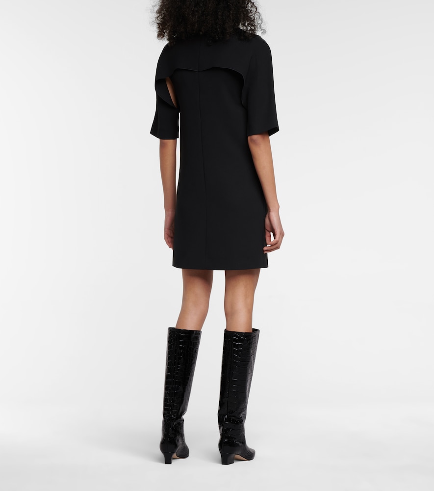Victoria Victoria Beckham experiments with asymmetric lines to create this minimalist-yet-intriguing minidress. Made from black twill, it has an A-line silhouette with draped paneling at the neck and discreet side-seam pockets.