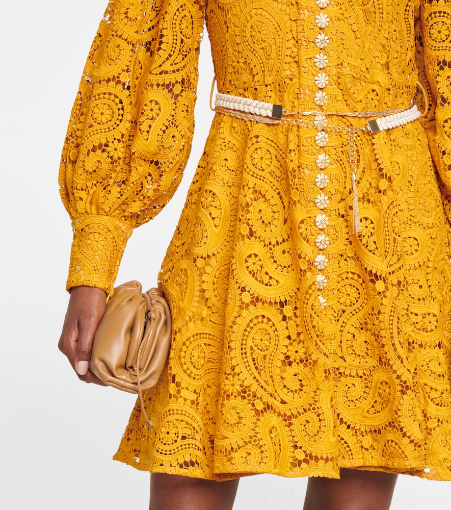 Lean on Zimmermann timelessly elegant evening wear. This lace minidress features crystal-embellished buttons, a belted waist and an A-line skirt.